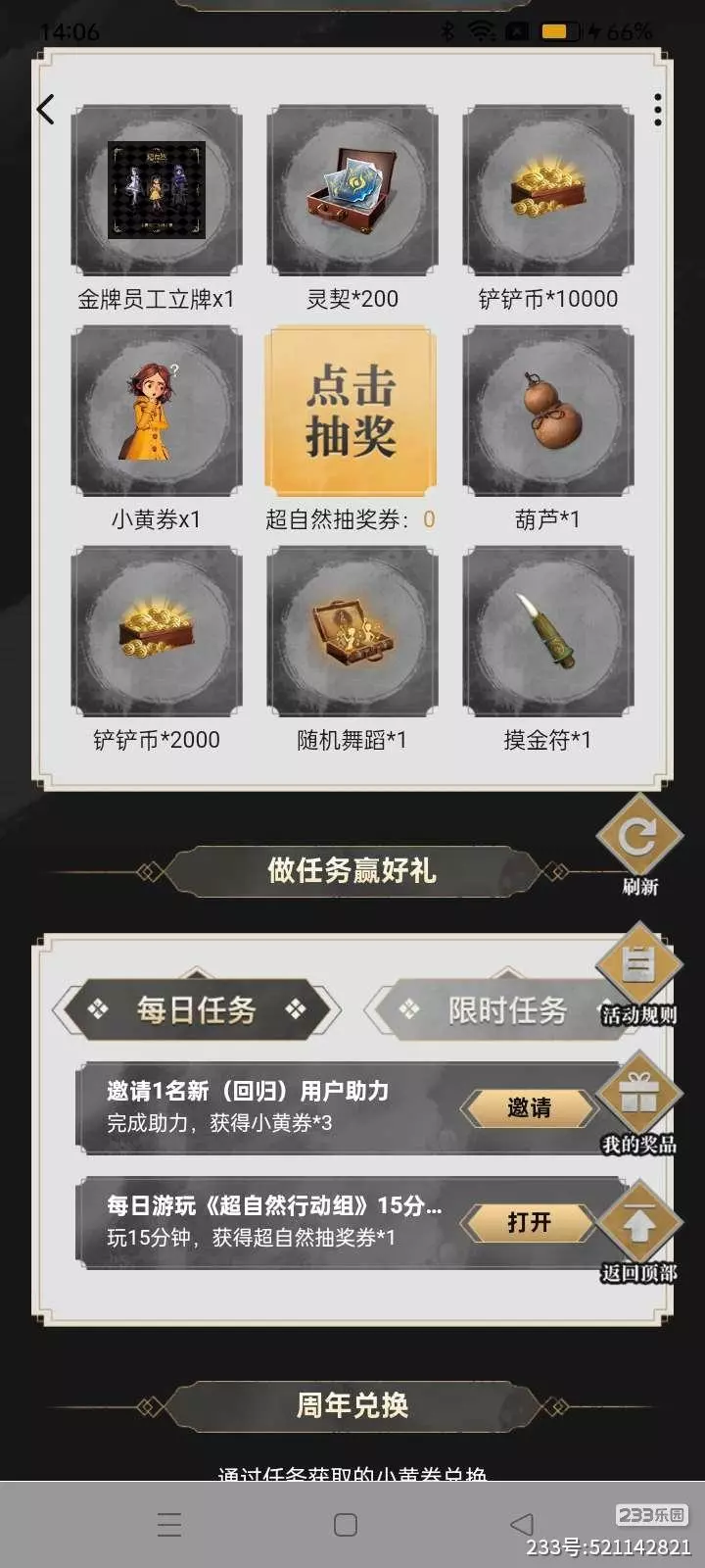 #福利推荐 哇塞,超自然和233这个活动真是太棒了,ᐢྀི. ̫ .ᐢྀི而且还送立牌,而且有很铲铲多币,运气好的话可以抽多一点,做任务就能获得抽奖券啦。
