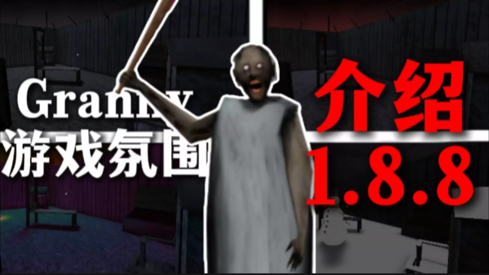这是恐怖游戏《恐怖奶奶》的相关内容,展示了在奶奶1.9、奶奶4、奶奶5等最新章节中,使用双管散弹枪对抗所有敌人的游戏内容,呈现了游戏内的战斗场景与不同章节的画面。