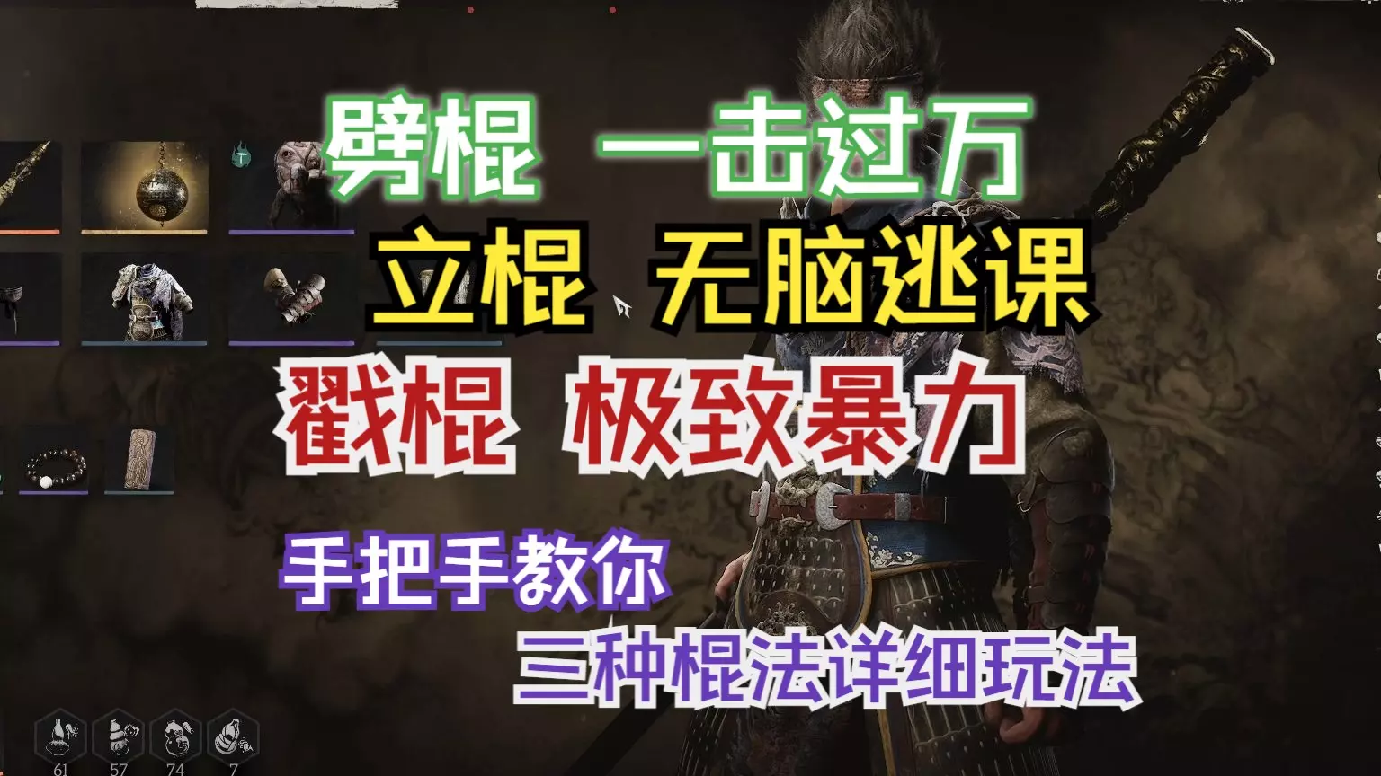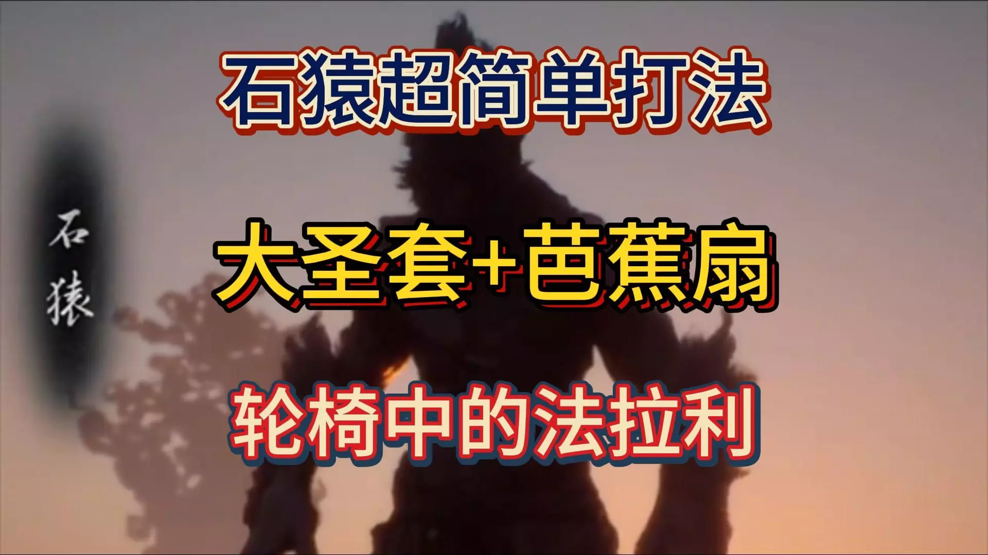这是《黑神话悟空》里大圣残躯的逃课轮椅攻略,介绍了定身法、芭蕉扇、砗磲佩等道具的使用,还提及怒相厚积天赋、如意金箍棒的搭配,助力玩家轻松应对大圣残躯。