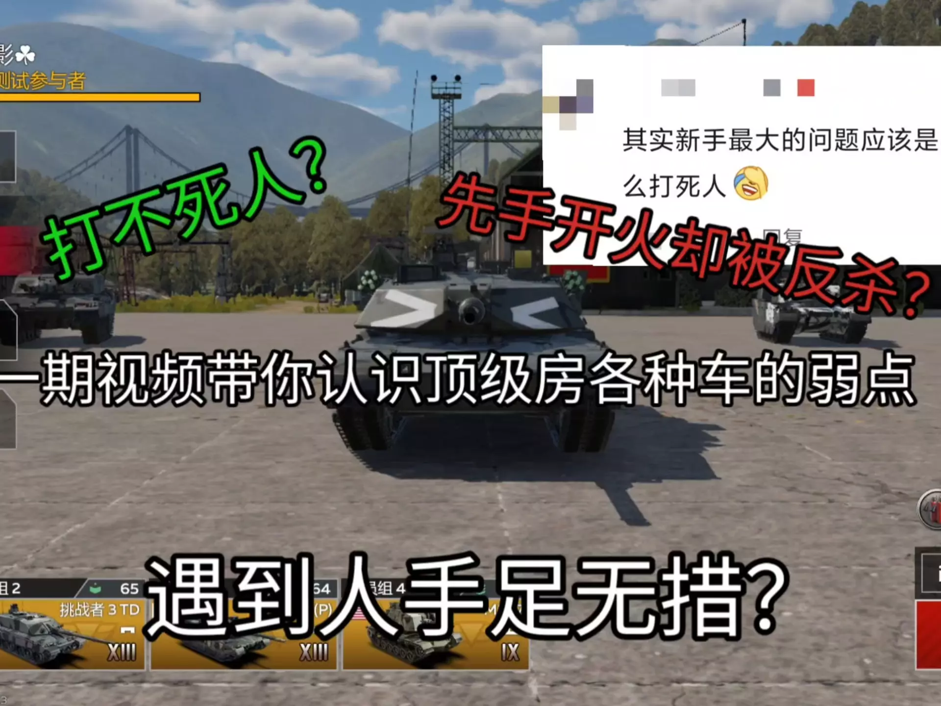 上期视频发出来,我就想要不要再做一个弱点教学?毕竟平时被对面打很多炮不死挺难绷的,刚好评论区也有人说新手需要教弱点,于是就有了这期视频