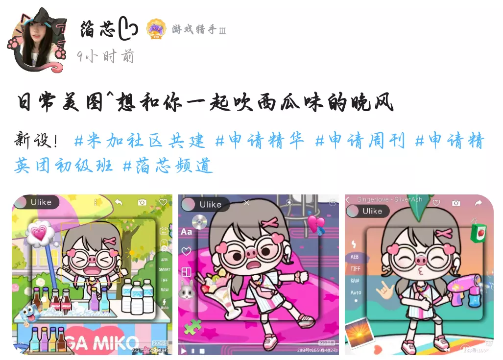 一周时光就像过山车,“嗖”地一下就到了周末, 这七天里,大家在米加里疯狂迸发灵感,创造出了超多高质作品 每一个作品都耀眼无比!