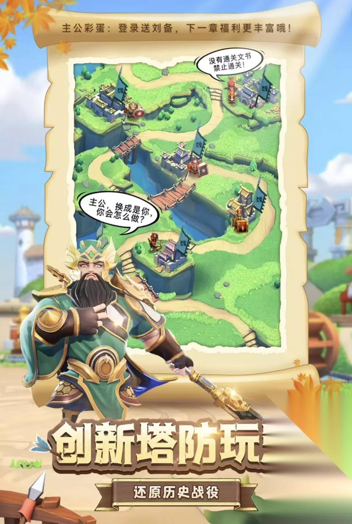 采用国风二次元美术语言重构三国世界观,核心玩法围绕卡牌收集与策略布阵展开。玩家通过召唤系统获取魏蜀吴阵营武将卡牌,每张卡牌对应独立技能树与羁绊关系。战斗中支持自由拖拽部署,兵种间存在明确克制链(如枪兵克骑兵、弓兵克步兵),地图含PVE主线关卡、PVP实时竞技场及跨服军团战三大模块。每日活跃任务包含签到、在线时长、副本通关等维度,奖励涵盖元宝、将魂、升星材料等关键资源。 扫码下载该游戏 高速下载 普通下载 优先233乐园APP下载 3、《三国塔防:守卫者的信条》