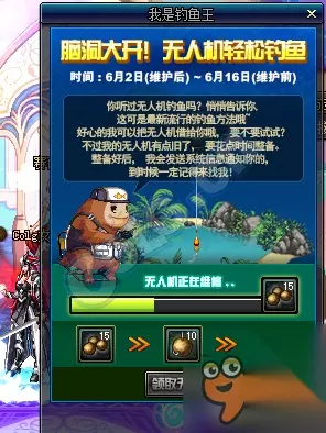 2016年12月1日至12月15日,站街钓鱼即可兑换各种升级券,还有机会获得任务传说材料! 获得鱼饵 每日登陆 活动期间,玩家每日首次登录游的角色戏即可获得【初级鱼饵】、【中级鱼饵】、【高级鱼饵】各一个! 每日在线 活动期间,玩家每天在线达成一定时间可以领取鱼饵。累积时间以帐号维度累积,每个帐号每天限制领取一次。