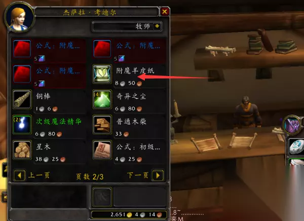 3、完成附魔后,即可把附魔效果施加在附魔羊皮纸上,可以打开背包,选择已附魔的卷轴查看。