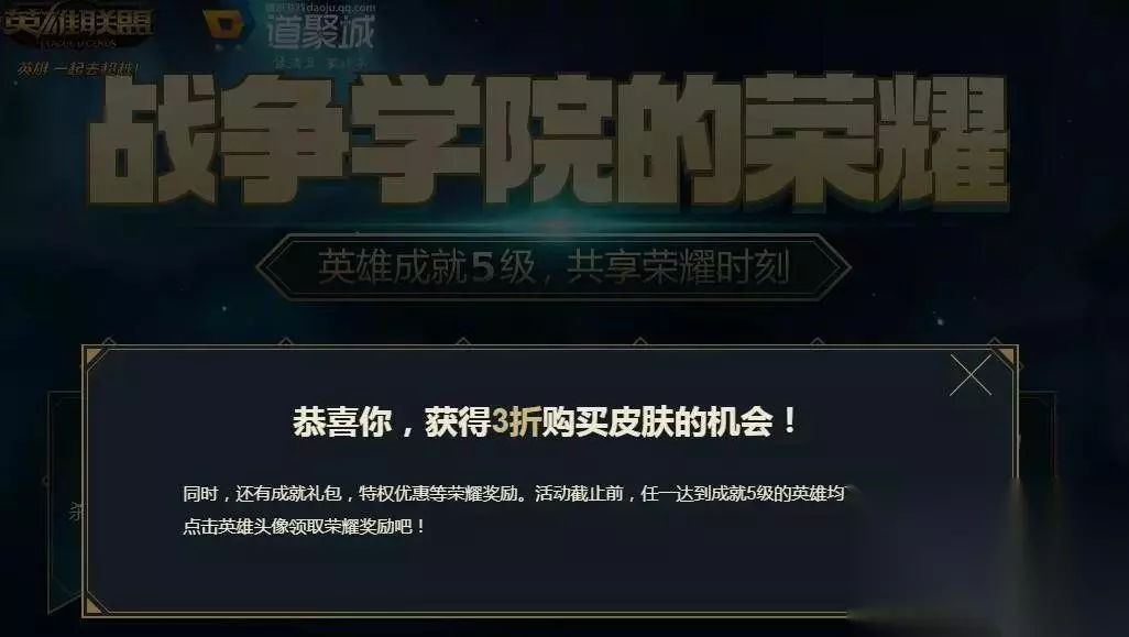 战争学院的荣耀活动开启了,这是老活动了,根据你已有的5级成就英雄来开启相对应的折扣,然后可以以折扣的价格购买皮肤,这个大伙是知道的!