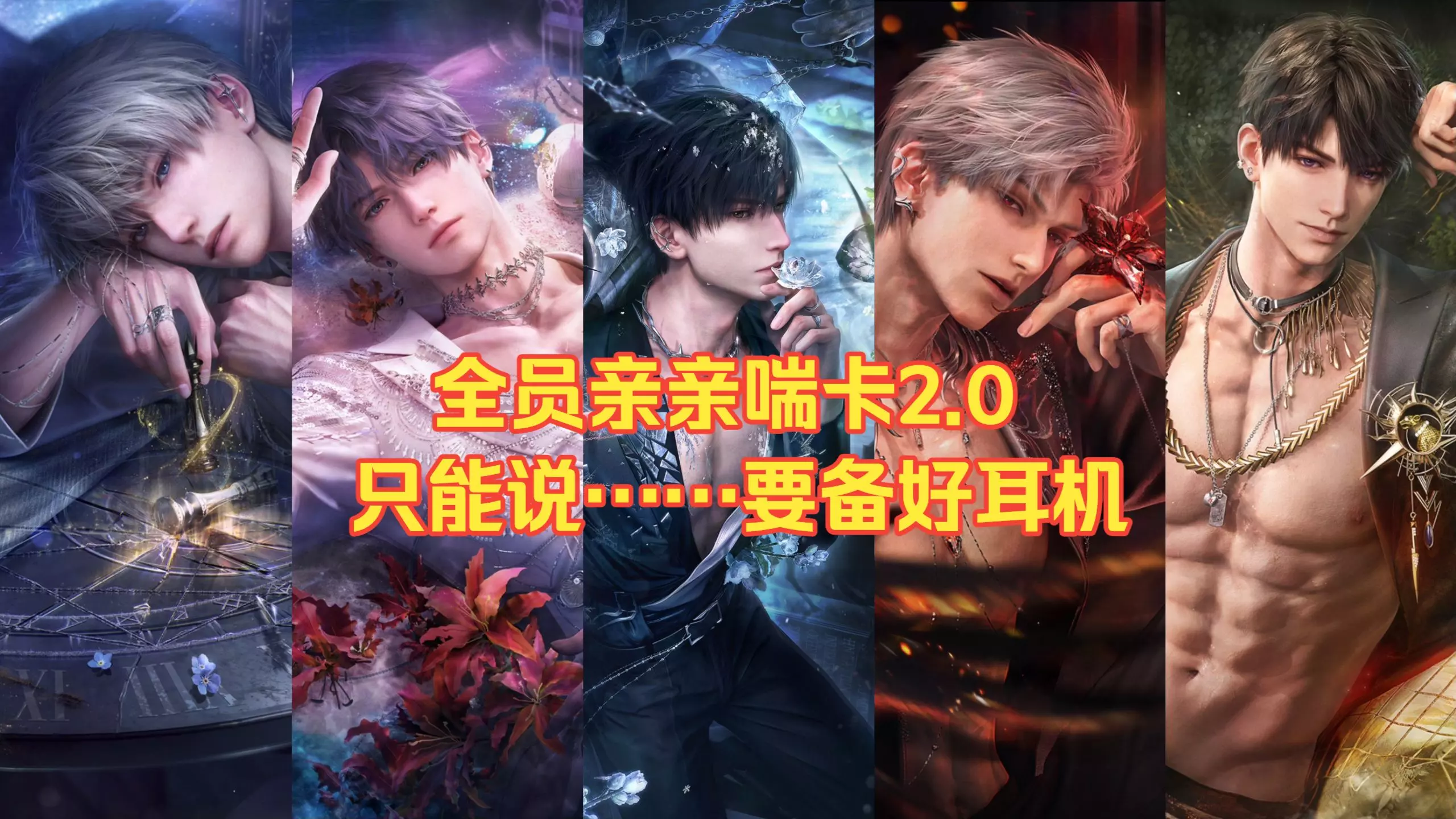 这是游戏二周年【焕梦映此间】的四星卡合集内容,展示了「夏以昼·潮湿盛野」等五张角色卡,图中呈现了夏以昼相关的亲密互动剧情片段,氛围暧昧。
