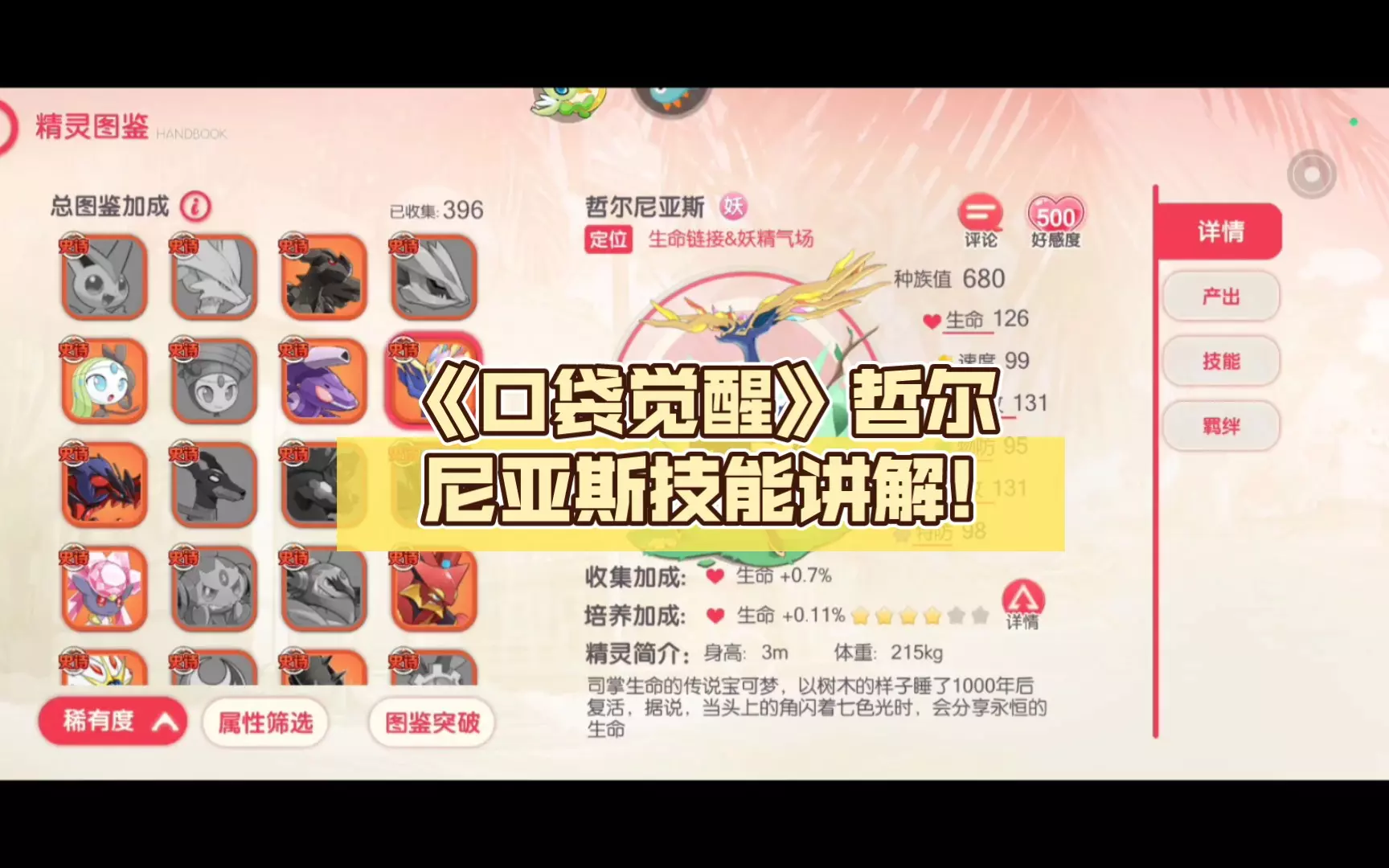 这篇《口袋觉醒》手游情报解析了哲尔尼亚斯热门的原因,它的生命光环、妖精气场、生命链接、鹿魂等技能能为队友提供血量分享、伤害平摊、伤害提升、免控回血等多种强力辅助效果,是很多队伍的必选精灵。