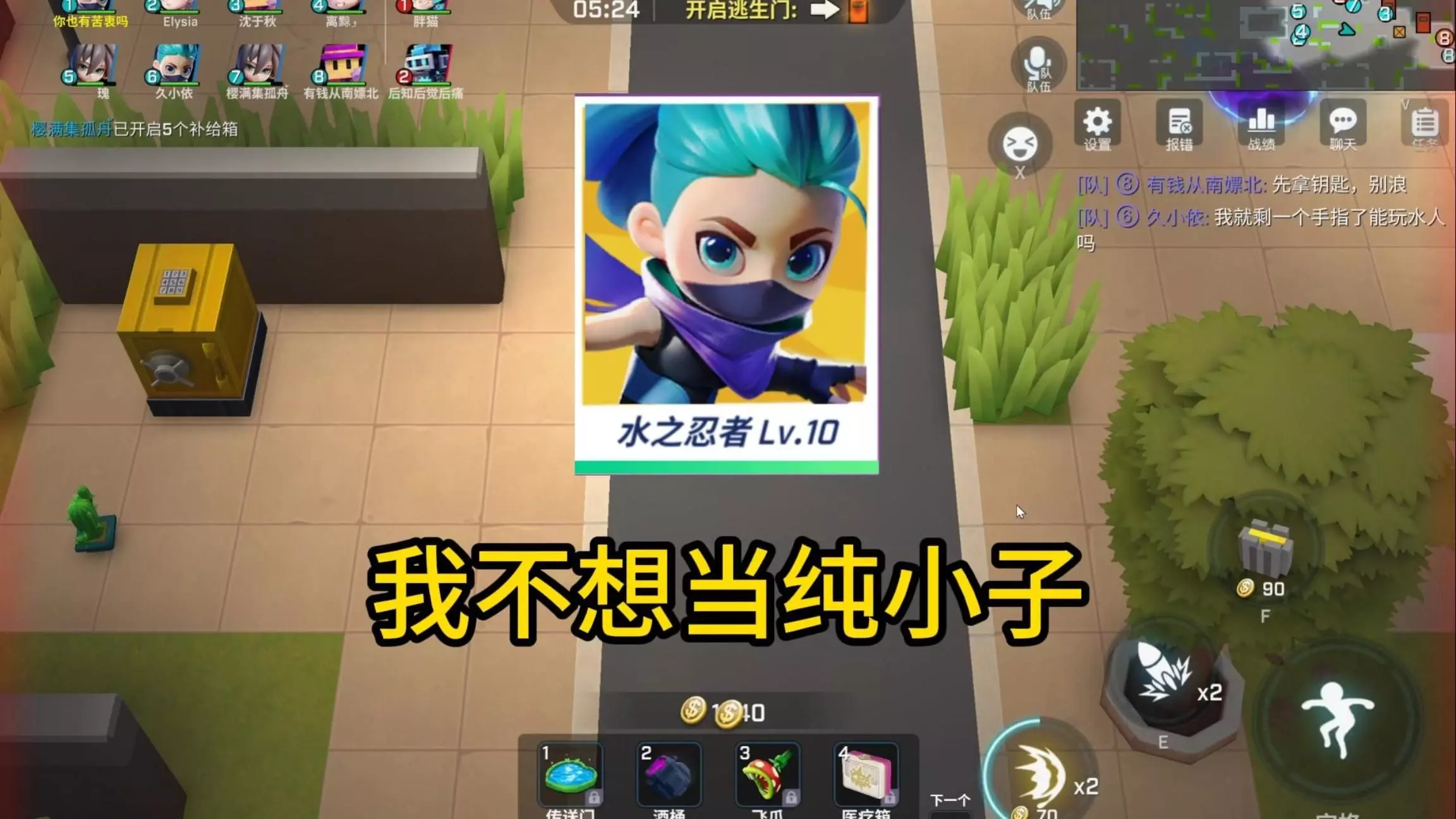 这是《逃跑吧!少年》的低端局游戏剪辑,展示了玩家操控角色艾可在对局中拾取美味食盒、和队友交流,完成开启逃生门的任务,呈现了该角色在低端局的游戏表现。