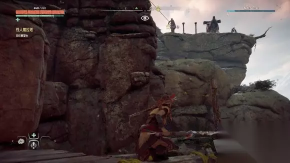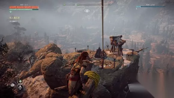 来到瞭望台下方后沿攀爬点往上爬,瞭望台需要从上面滑索滑下去。