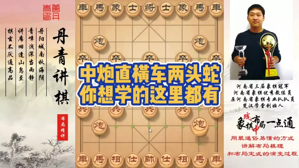 中炮直横车两头蛇,你想学的这里都有!如何快速提升象棋水平?如何学习象棋布局、中局、残局?河南省象棋冠军黄丹青全套象棋课程!真心教棋,少走弯路,带你上业九,不上业九不罢休!#象棋 #象棋布局