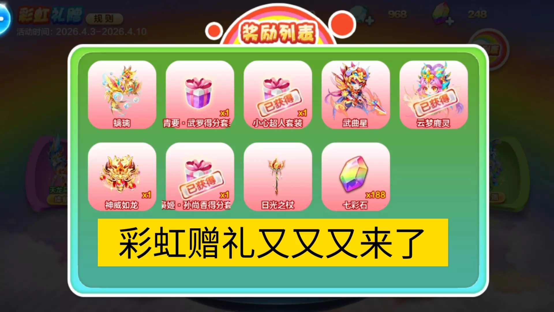 感觉除了彩虹礼赠,其他的活动都一般般吧