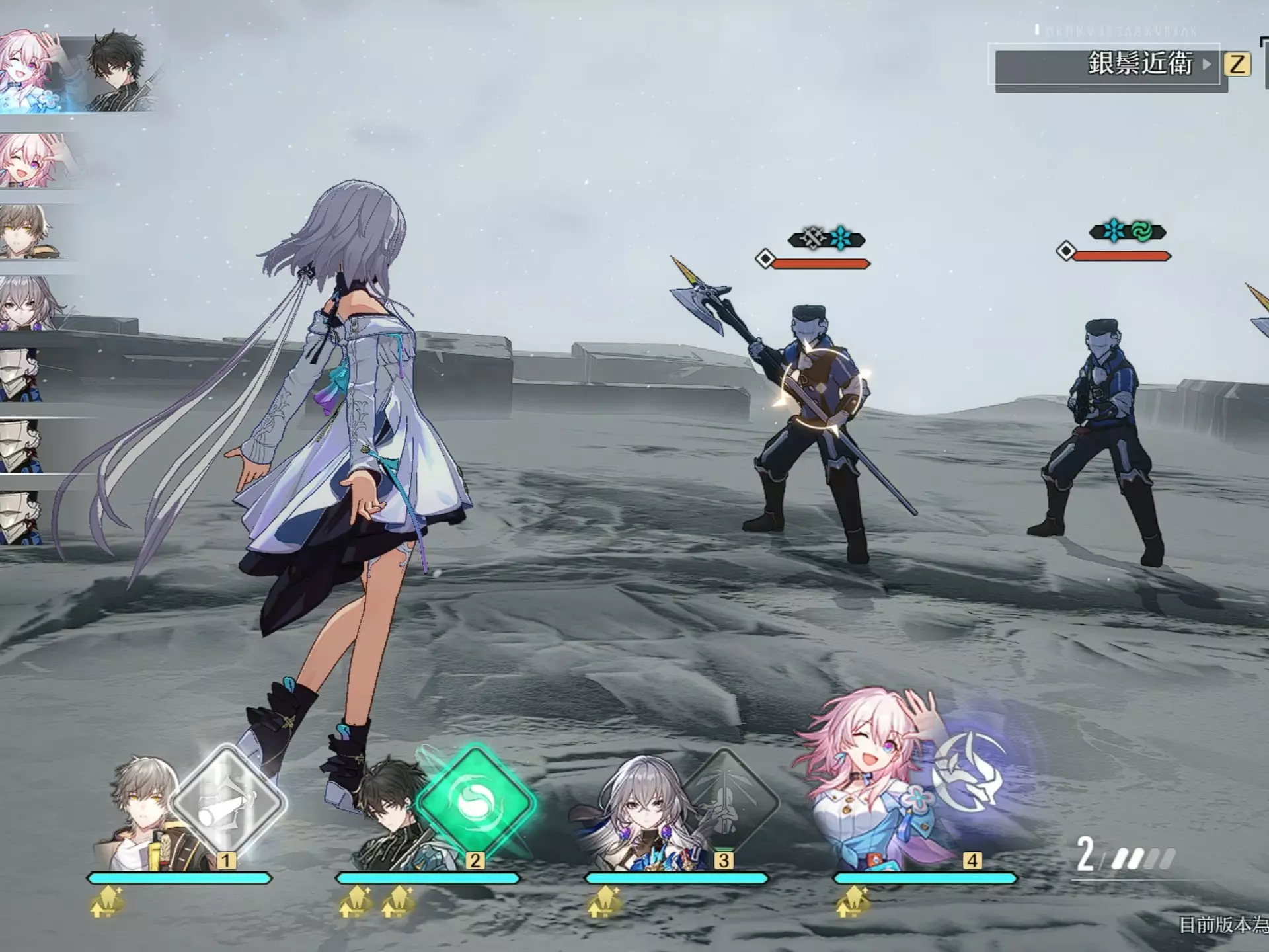 这是游戏《崩坏:星穹铁道》的相关内容,展示了三月七、布洛妮娅等角色,还有银鬃近衛敌人,以及扭曲之茧挑战玩法,呈现了雪地场景中的战斗画面。