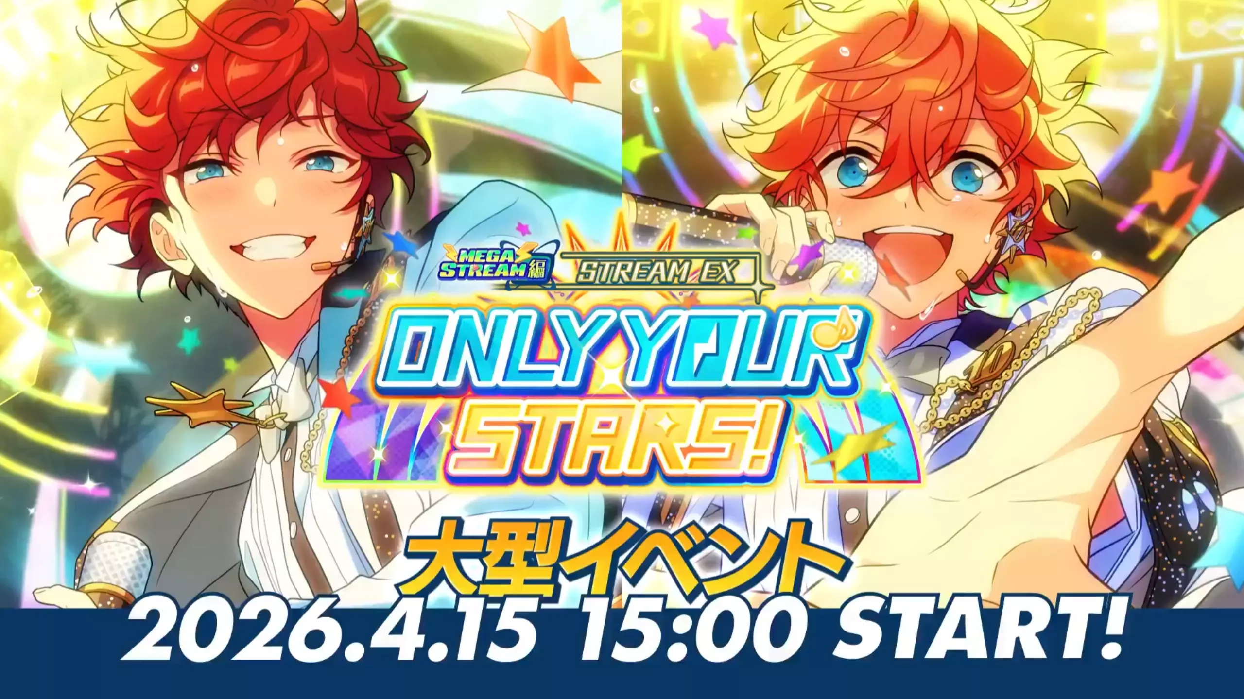 这是《偶像梦幻祭》10周年收尾的大型活动【メガストリーム】編/STREAM EX:ONLY YOUR STARS!的PV,活动里偶像们将齐聚描绘星座,还会在转为“浮游都市”的メガスフィア举办学园祭,呈现精彩的偶像舞台。
