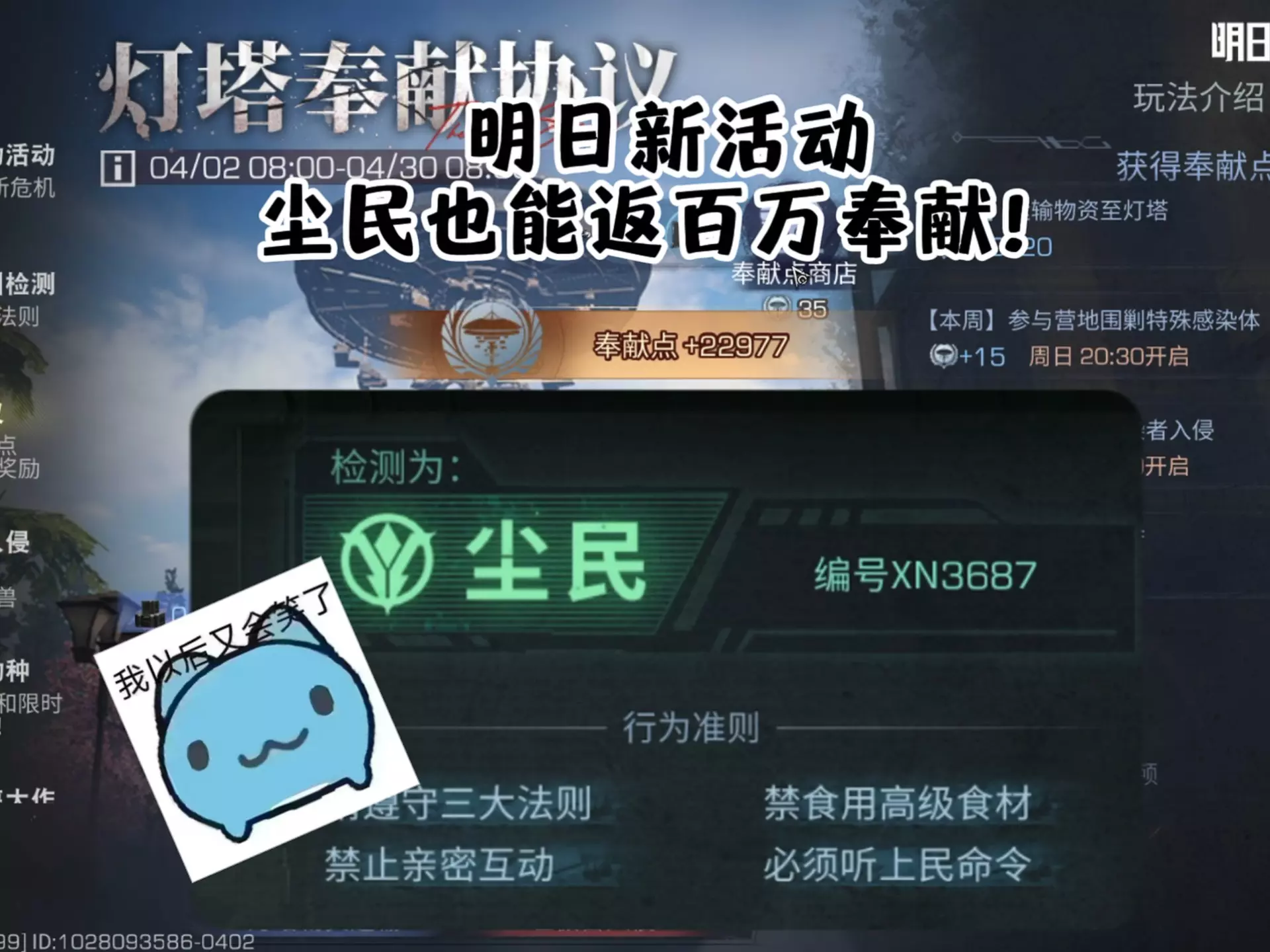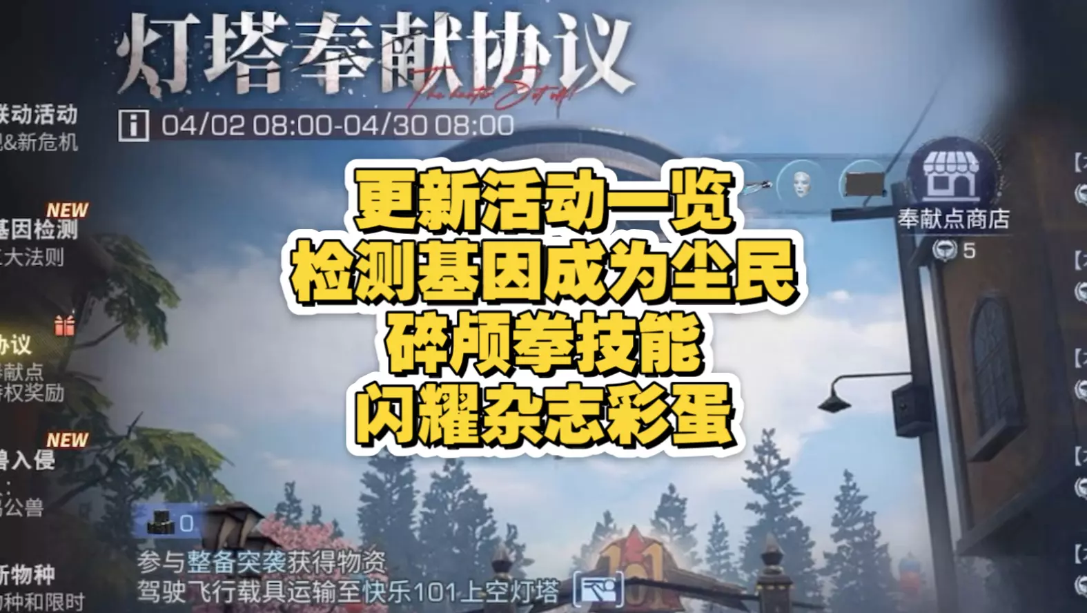 《明日之后》开启灵笼联动活动,上线灯塔、晨曦大厅相关玩法,玩家可参与基因检测获得身份,收集奉献点优化基因升级身份,还有联动奖励可获取,活动有专属载具等内容,实际以上线为准。