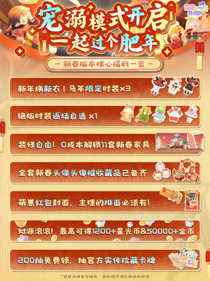马年新时装、返场时装自选、全套新春头像头像框收藏品、新春家具、海量抽奖券和游戏资源,通通送给你!