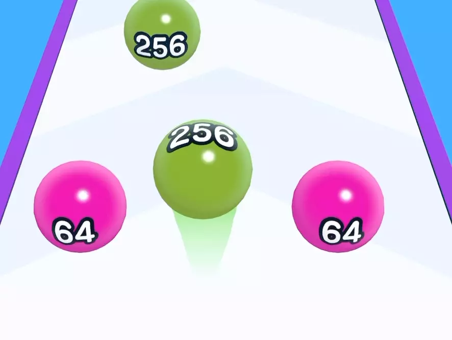 这是一款2048主题的跑酷合成小游戏,玩家操控带数字的小球在赛道前进,躲避尖刺,合成更大数字的小球,冲击更高分数,玩法融合了2048合成与跑酷元素。