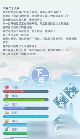 古代人生游戏鬼市如何进?享受趣味玩法,获取聚宝体验。手机乐园夏了夏天小编带来内容详情,有着更多发挥。 鬼市触发方法与玩法技巧攻略 看运气,在进活动的时候可以看看护城河下面,鬼市可能在下面,去打猎可能看见,买东西可能遇见,去喝酒可能会看见,也可能被直接拉进去。 奉劝你看东西看仔细点,看几率,别当场暴毙。鬼市都会以什么名字出现你应该都知道,就不说。