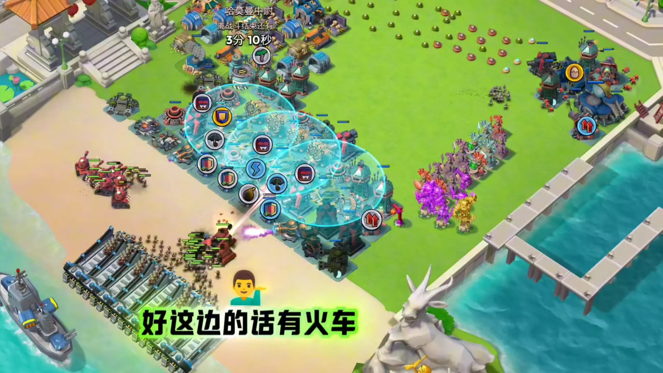 这是手游《海岛奇兵》的哈莫曼的反击玩法情报,玩家当前面临威胁等级58的哈莫曼的反击,已完成第2阶段,还有多阶段待挑战,因基地设施未修好,玩家不敢将大本前置。