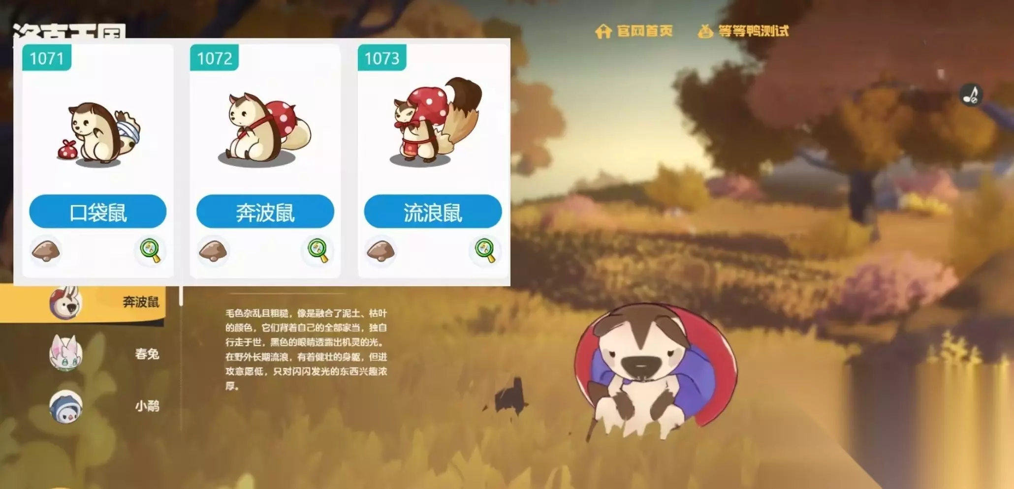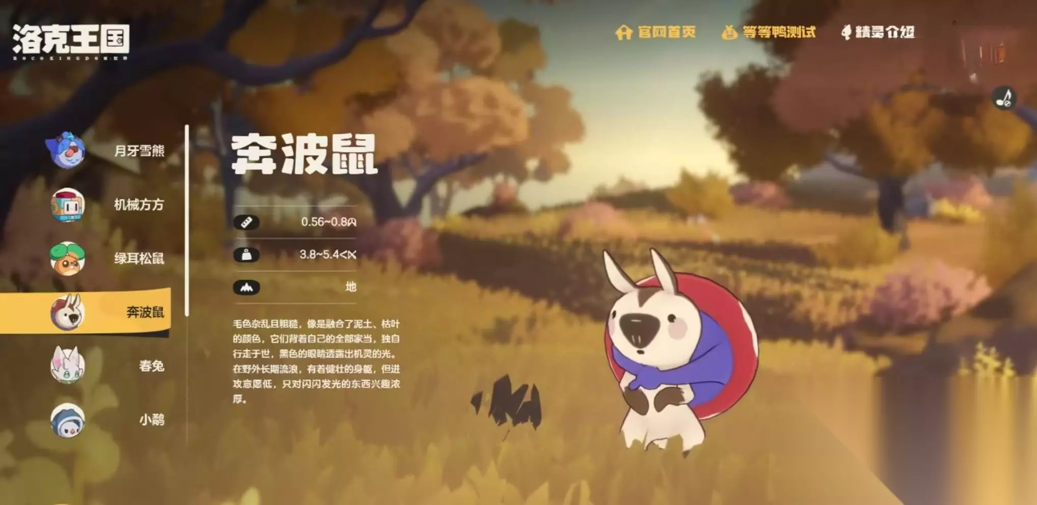 以上就是关于洛克王国世界中奔波鼠的详细介绍。作为曾经陪伴无数玩家成长的经典精灵,它在本次二测中以焕然一新的形象回归,无论是外形设计还是功能性都进行了优化升级。喜欢鼠系精灵或追求探索乐趣的玩家,不妨在游戏上线后亲自尝试捕捉一只,感受它的独特魅力。