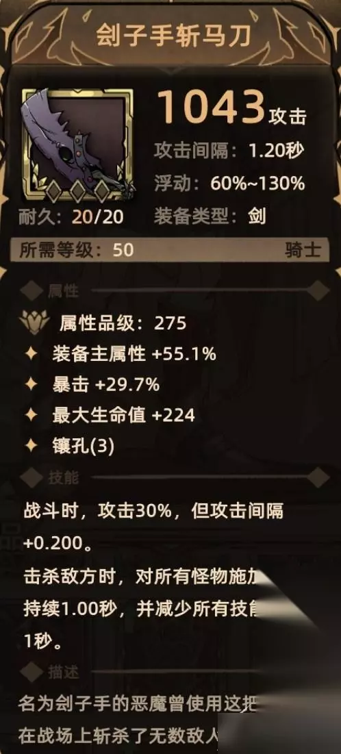 14. 刽子手斩.马.刀 掉落地点:全局掉落; 关键词:装备主属性、暴击、生命、镶孔、攻击、延长自身攻击间隔、控制、降低冷却。