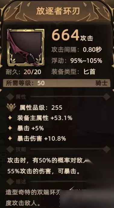 10. 放逐者环刃 掉落地点:全局掉落; 关键词:装备主属性、暴击、爆伤、额外伤害(物理伤害)。