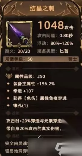 1. 结晶之刺(未实装,仅概念图) 掉落地点:不明(盲猜魔界深渊-5); 关键词:装备主属性、幸运、免伤贯通、镶孔、穿透、元素穿透、额外伤害(真实伤害)。
