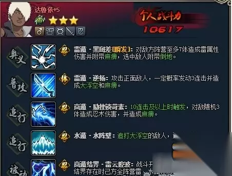 技能突破3:查克拉手术刀,这个其实没有神马意思了~~~多一次追打而已~ 2.君麻吕 这个是很多玩家都喜欢的人气忍者呢~根雷普及的时候还火了一段时间~可以说是最平民的坦克忍者了~