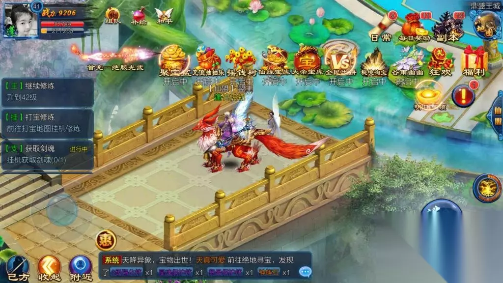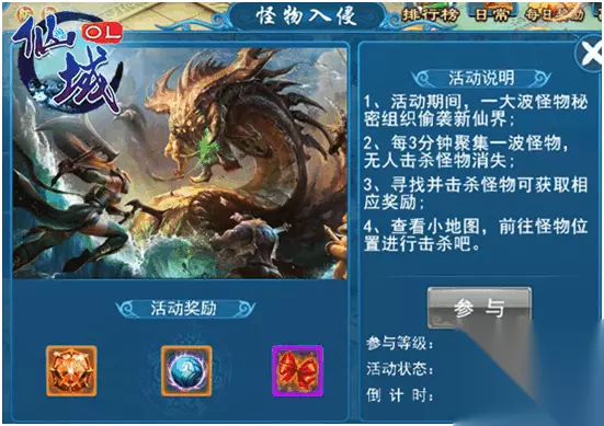 玩法简介:在《仙域OL》中,每日总会有一大波怪物想要破坏王城的安宁,这时候,活动期间,一大波怪物秘密组织偷袭新仙界、每3分钟聚集一波怪物,无人击杀怪物消失寻找并击杀怪物可获取相应奖励、查看小地图,前往怪物位置进行击杀吧。击杀怪物可以获得各种铜币,真气,还有机会遭遇怪物BOSS,获得大量奖励,另外怪物攻城期间,还会有玩家获得世界幸运大奖哦。 玩法评价:是个激爽又能得到一系列丰富奖励的玩法,值得一玩。 2.灵池