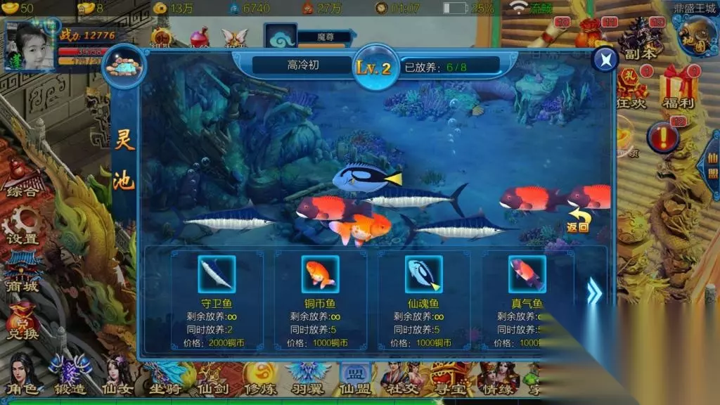 玩法简介:游戏中,灵池的的特色是,轻松放养鱼,待鱼儿成熟后,更是可以获得一系列仙魂奖励,当我们鱼塘里子弹足够时,更是可以去好友与的鱼塘扑鱼,而子弹也可以用元宝来补充,在鱼类市场有很多种类的鱼的可以放养,但需要消耗一定的金币。 玩法评价:在休闲的时候可以玩玩,养养鱼,捉捉鱼,还是比较怡情。 五、游戏建议或问题 1.角色与原始装备的美化。 2.主界面上面的功能图标位置优化下。 3.美化下角色战斗时的配音。 六、总评 《仙域ol》游戏,在这封测几天的体验下,总体来说还是不错的,除了一些小问题外,各类功能系统,独特玩法,基本应有尽有,好玩不已,明天游戏就是结束测试了,也期待下一次游戏测试中,能够有更好的体验,与各位友友一起玩耍。 以上作品由 233乐园原创写手组”成员 高冷初(438547891) 提供 如果你热爱游戏 如果你也爱分享 如果你也希望自己的名字 登上233乐园头条 欢迎加入233乐园原创写手小组 申请者请进链接233乐园原创写手组欢迎您