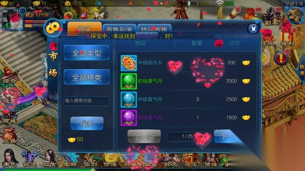 游戏中的交易系统称之为市场,在这个市场中,我们可以购买自己需要的东西,更可以出售自己不需要的东西,在购买栏更是可以筛选自己想要东西的类型和种类,或者直接进行简单的搜索,就能找到自己想要的东西,十分完善。 6、仙盟系统