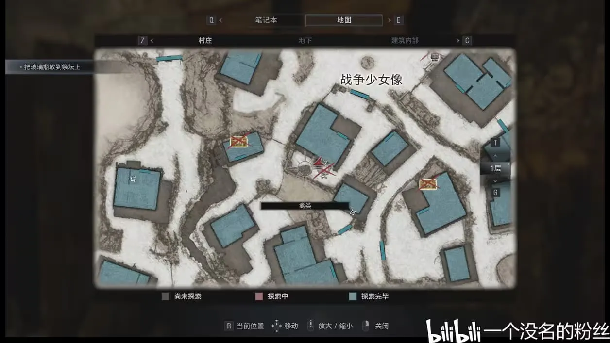 ②再次回到村庄后来到战争少女像下面的这个小院子里,然后在地图上这个鸡的左边就是第二个厕所,打开就好。