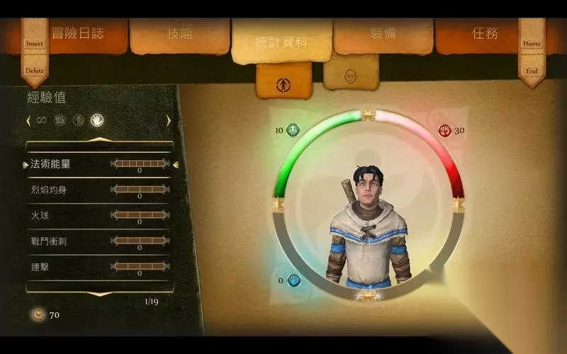 魔法类能力则包含了男孩可以施展的法术。 增加各项法术的等级就能增强其法术效果。