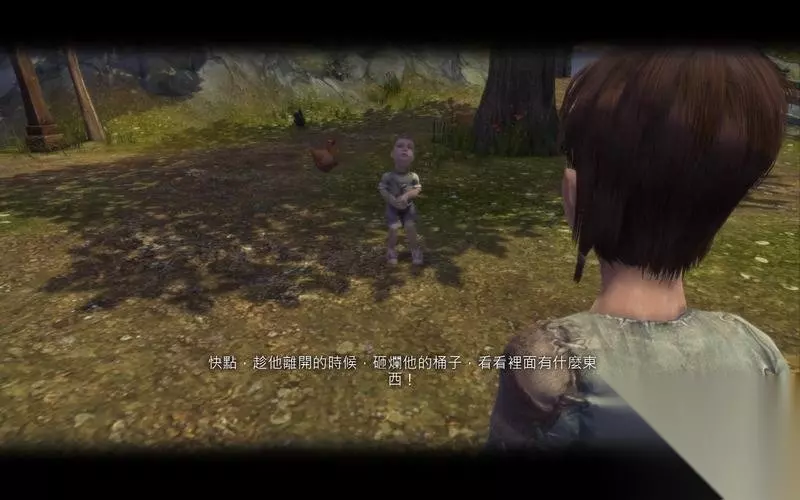 男孩在村子的后山附近发现了正在欺负别人的小混混。 按住空格就能锁定目标并攻击本来不是红色边框的目标。 这一招可以用来攻击善良的人,也可以用来教训NPC。