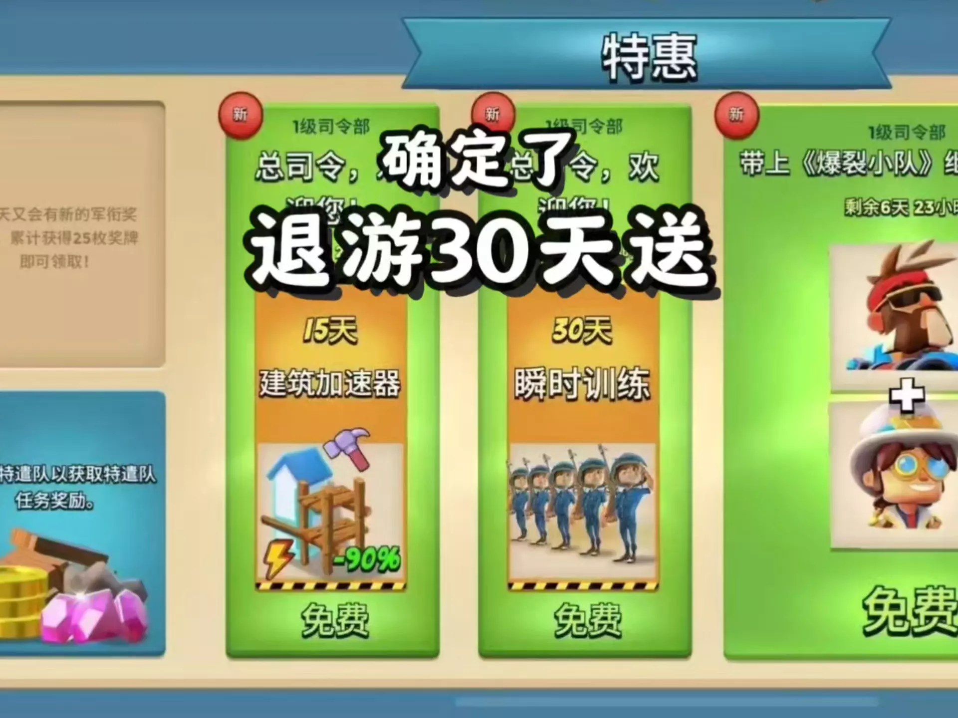玩家在《海岛奇兵》新开账号游玩几天后,退游仅两周重新登录,就触发了海岛奇兵的专属回归签到礼活动,可累计签到领取钻石、材料等多种回归奖励。