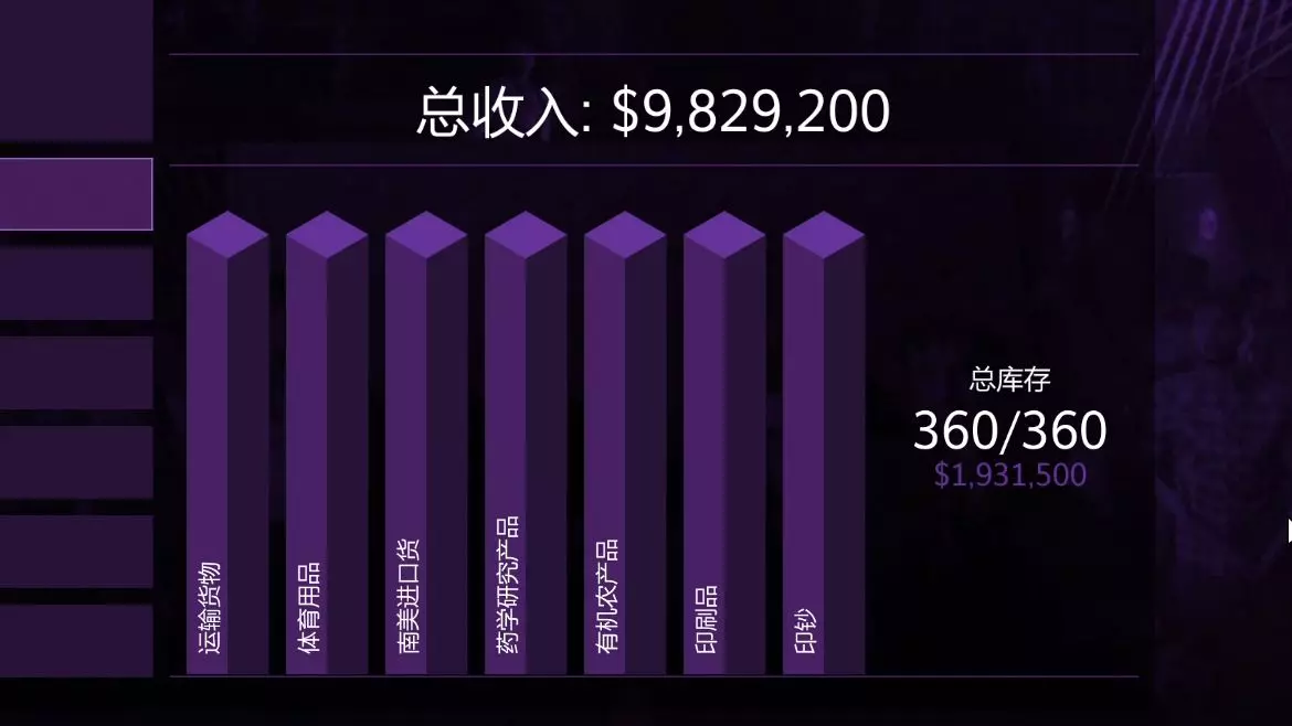可以看到满仓是1931500,而不是很多玩家口中的200w整,其中体育用品是拿货效率最差的,甚至在其它货物拿满时,体育用品都还差15个货