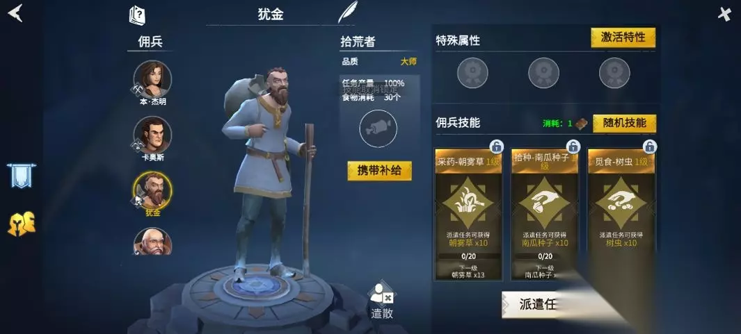 【佣兵说明】雇佣兵给咱们带来的效益主要是“材料”方面的,他们每个雇佣兵都有相应的专业技能。每次派遣出去的雇佣兵的探索时限各不相同,很大程度上取决于雇佣兵的等级和技能,而带回来的材料则根据雇佣兵的品类和专业方向而有所不同。而想要不同专业方向的雇佣兵就需要用招募功能来获得,并消费相应的招募书。 【佣兵分类】雇佣兵根据其职能分为六种类型,[采集者]-[清道夫]-[猎人]-[学习者]-[工匠]-[探险家]-[工匠]以及[探险家] 。