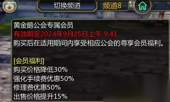 龙之谷怀旧服已经上线了,而且最近更新了新版本,有很多玩家准备入坑,但是感觉金币不太够花,那么龙之谷怀旧服怎么省钱?下面就给大家带来龙之谷怀旧服省钱小技巧分享。 龙之谷怀旧服省钱小技巧分享 开服已经两周了,想必已经有不少小伙伴达到了满级,更有不少小伙伴拿到当前版本的毕业A装,踏上了“挑战铁匠”的强化之旅。但是呢,我们每一次大战铁匠都需要一定的强化费,这些费用可不低呢,很容易囊中羞涩。那么,有没有能省钱的方法呢?本篇就将为大家介绍超超超超级实用的小技巧 —— -50%的强化费用的黄金鹅会员!! 1. 黄金鹅效果,如图所示: