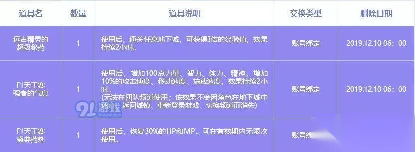 活动时间 : 2019年11月27日~2019年12月02日 在活动期间,可以获得热血燃战Buff Buff属性:力量,智力,体力,精神+80 攻击速度,,移动速度,释放速度+5% 决斗有礼 活动期间完成决斗任务即可获得以下奖励
