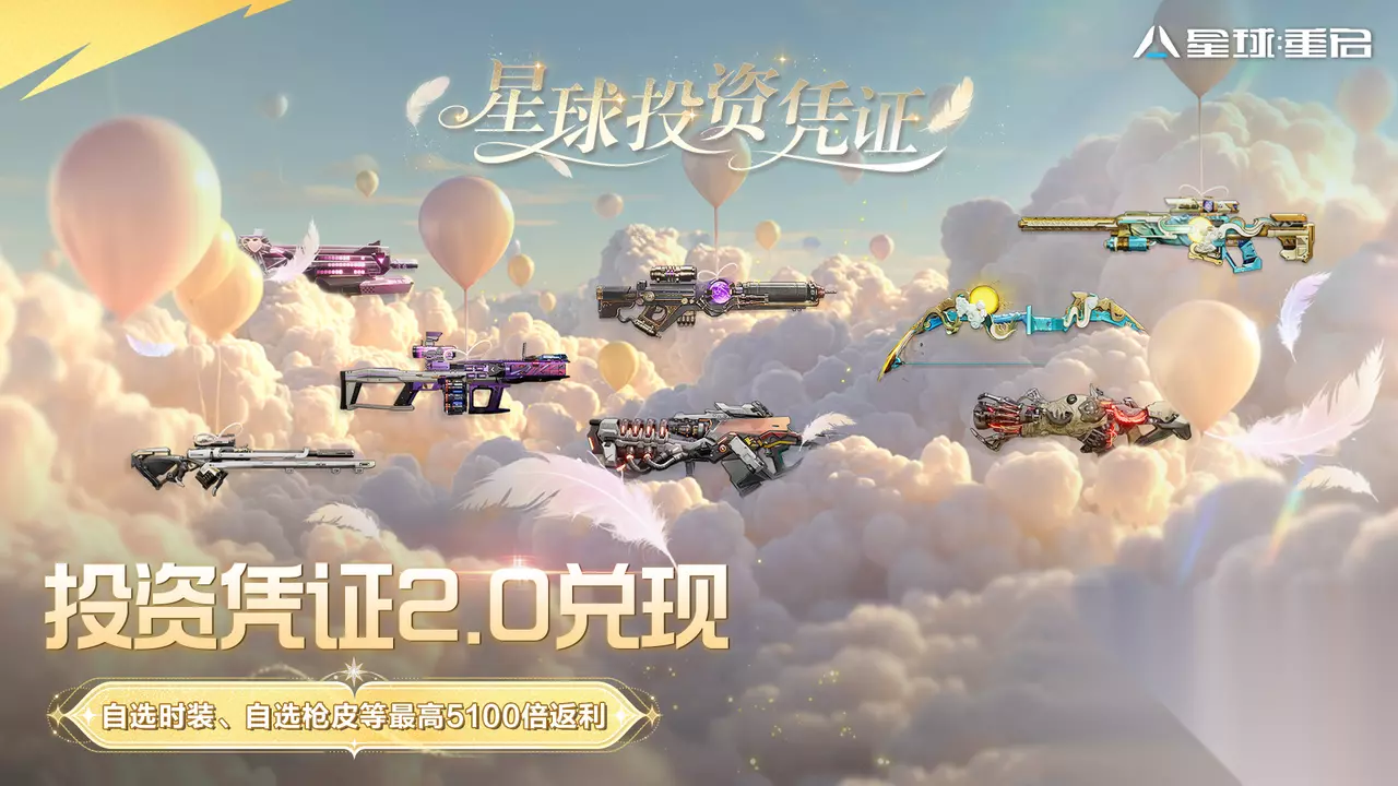 六、投资凭证:返还开放最高5100倍返利 特别感谢幸存者们一直以来的信任与支持,所有购买了星球投资凭证2.0的星球投资人可以直接使用道具,打开面板获得最高5100倍返还奖励,且领取期永久生效!心仪武器外观和时装随你选!