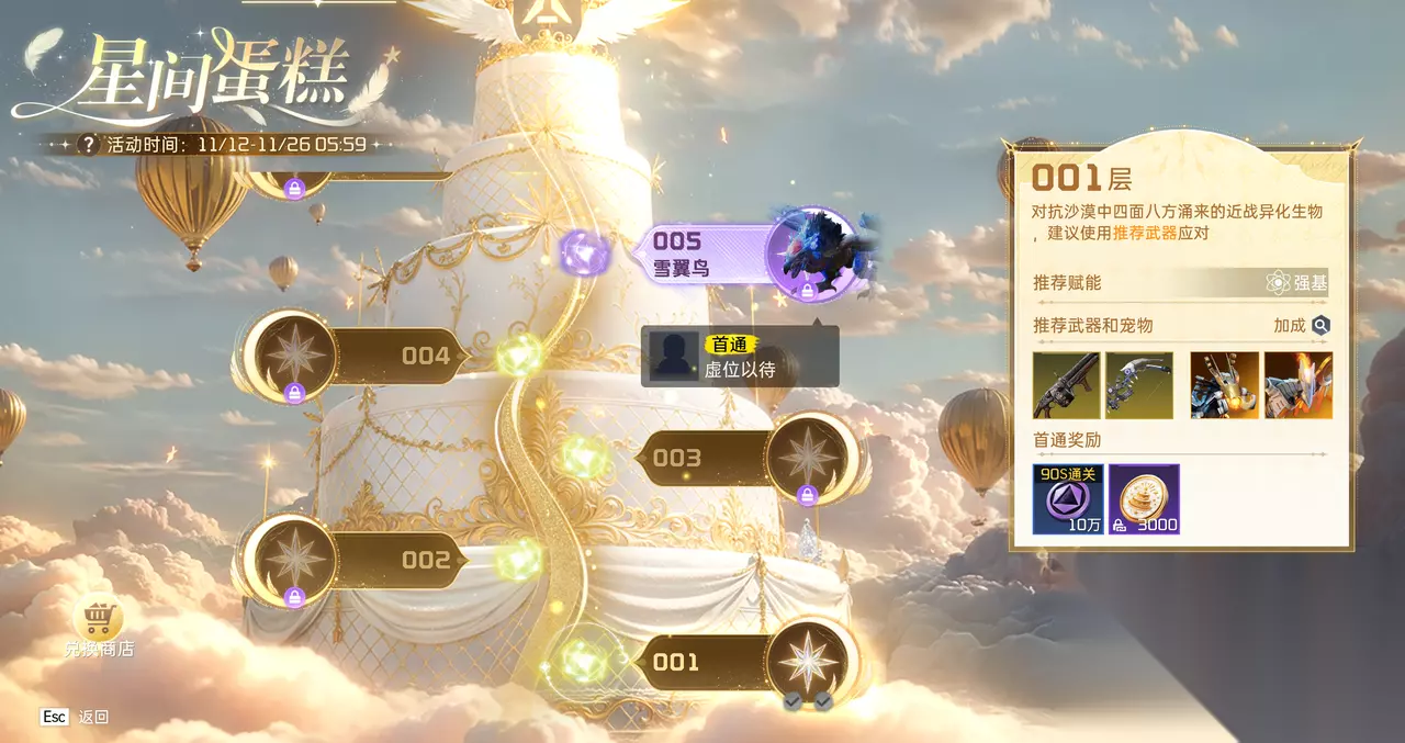 一、星间蛋糕:挑战闯关,兑换丰厚奖励 星间蛋糕活动,多层关卡等你挑战,每层都有不同异化生物拦路,推荐赋能、武器和宠物可帮你轻松通关哦~ 首通奖励&机制:首次通关每层关卡,可获丰厚首通奖励;同时每5层会展示首次通关的第一位幸存者,快冲榜争当先锋! 条件通关奖励:满足关卡条件,还有额外奖励加码。 挂机奖励:通关后挂机就能领代币,24小时收益封顶。 攒够星间金币可前往商店兑换,「像素电波」头饰外观、「双岁织星」家具、S级战甲组件等超多好礼任你挑,每天收菜轻松兑换商店奖励,这波闯关稳赚不亏!