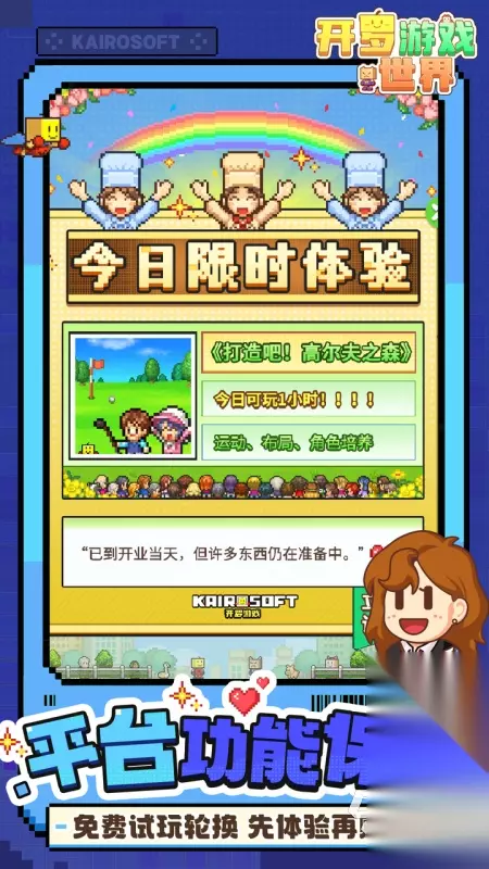 一开始便是会从最小的餐馆出发,随着玩家们赚取到的资金越多,便可以去逐步的扩大自己的店铺规模,还可以提升店铺的等级,从而解锁更多的食材和菜品,《美食梦物语》这款手游还会有专门的烹饪比赛的项目活动,赢得的对应名次都可以让玩家们领取相应的奖励,从中提升店铺的知名度。 》》》》》#美食梦物语#《《《《《 3、《开罗游戏世界》
