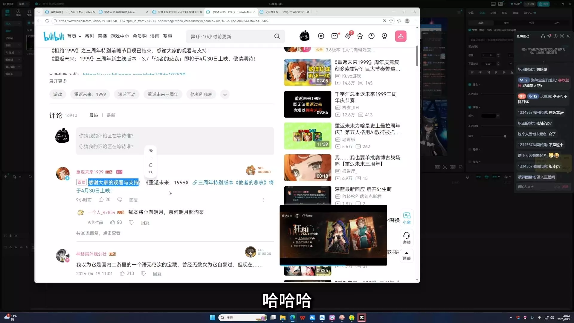 我不咋看b站,主要在dy。这期视频是在昨天制作出来先发在隔壁的。所以文案提的是三天。言辞较为犀利。