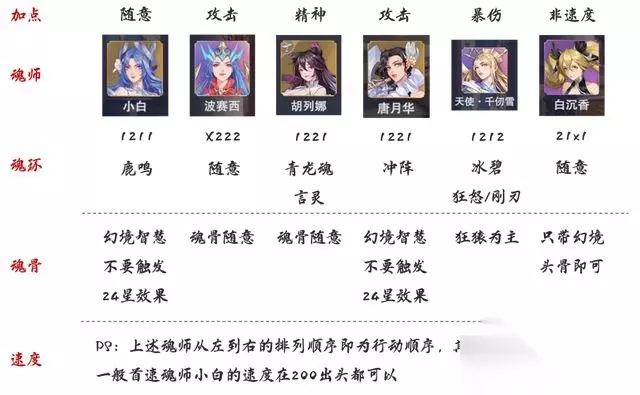 输出手法: 1.小白4技能 → 1技能 → 4技能 → 1技能 → 锁定4技能即可。 2.波赛西先用普攻,等到千仞雪的【天使领域】结束后立刻开启【海神领域】。 3. 4.唐月华第1回合先1技能推条,然后用1次4技能,接着锁定1技能即可。 5.天使千仞雪第1回合使用【天使领域】,然后锁定1技能即可战斗中蓝色光标一直给到SP千仞雪即可。