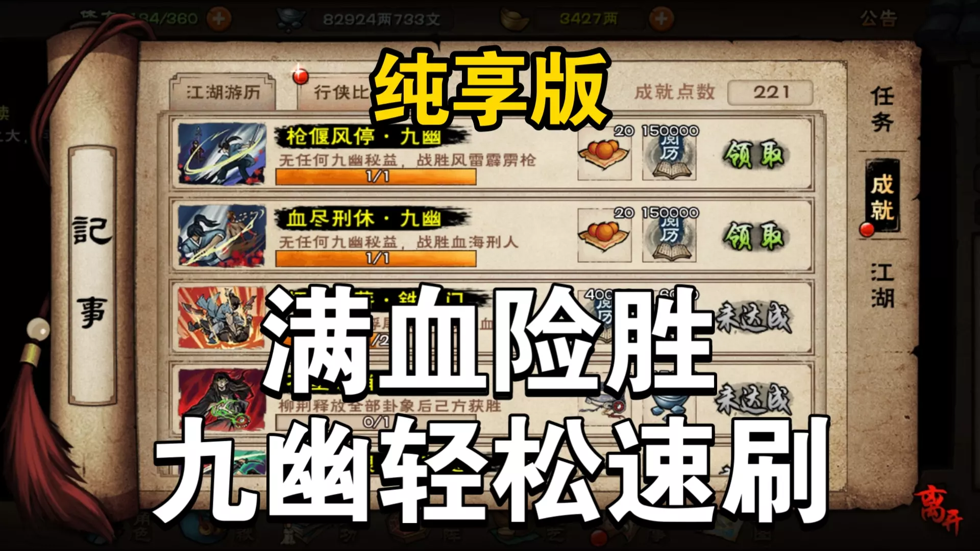 这是《烟雨江湖》的游戏内容,展示了133万战力无buff状态下,通关九幽试炼91、92关的全程过程,结尾还附上了角色的面板秘技,为其他玩家提供通关参考。