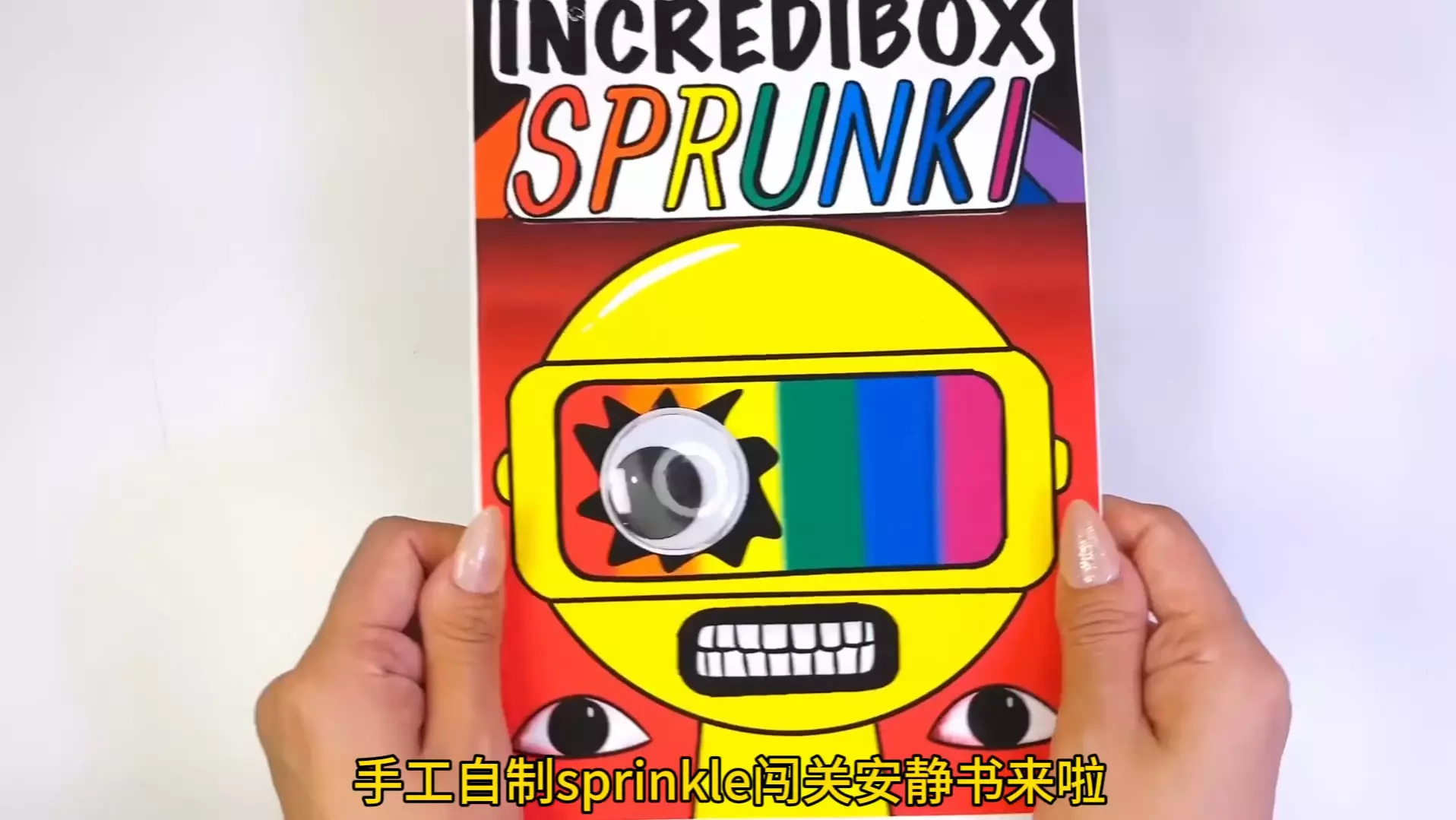 这是手工疯狂动物园安静书第一集,展示了名为“疯狂实验室”的手工安静书,满足指定条件即可开启,书中包含寻找动物碎片等趣味互动内容。
