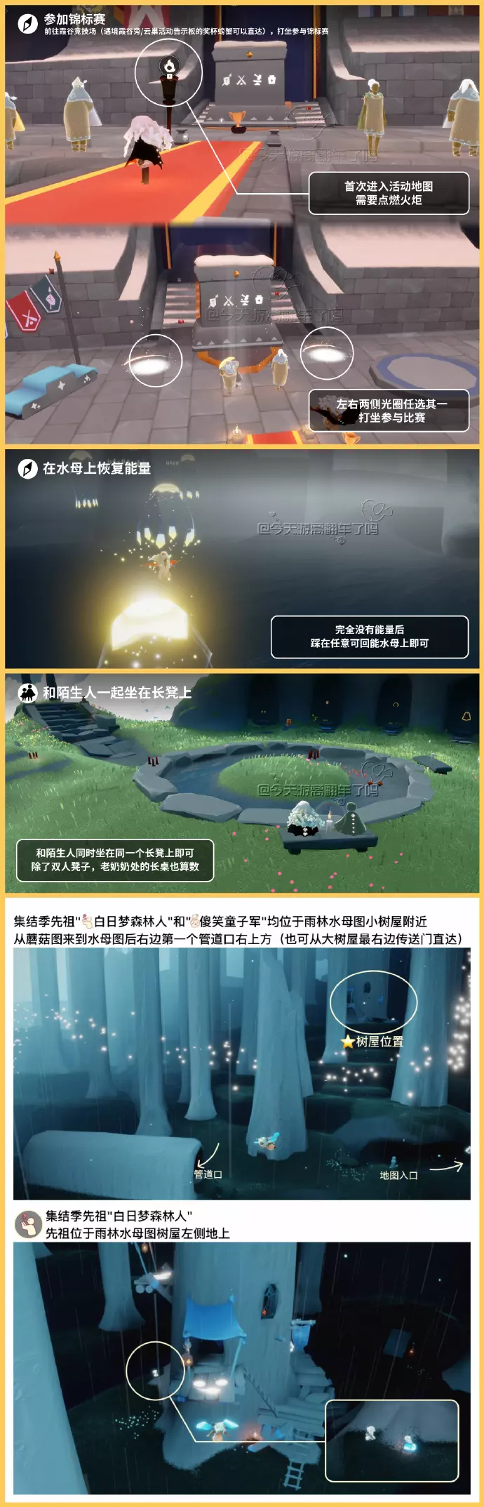 《光遇》游戏中每天的每日任务及大蜡烛的位置都不相同,玩家完成每日任务及收集大蜡烛都可以得到丰厚的兑换奖励,奖励可以用于兑换各种动作及道具,不过很多小伙伴不知道每日任务怎么做,又懒得自己去找大蜡烛的位置,我们汇总了每日任务的完成攻略以及蜡烛位置,一起来看看吧!