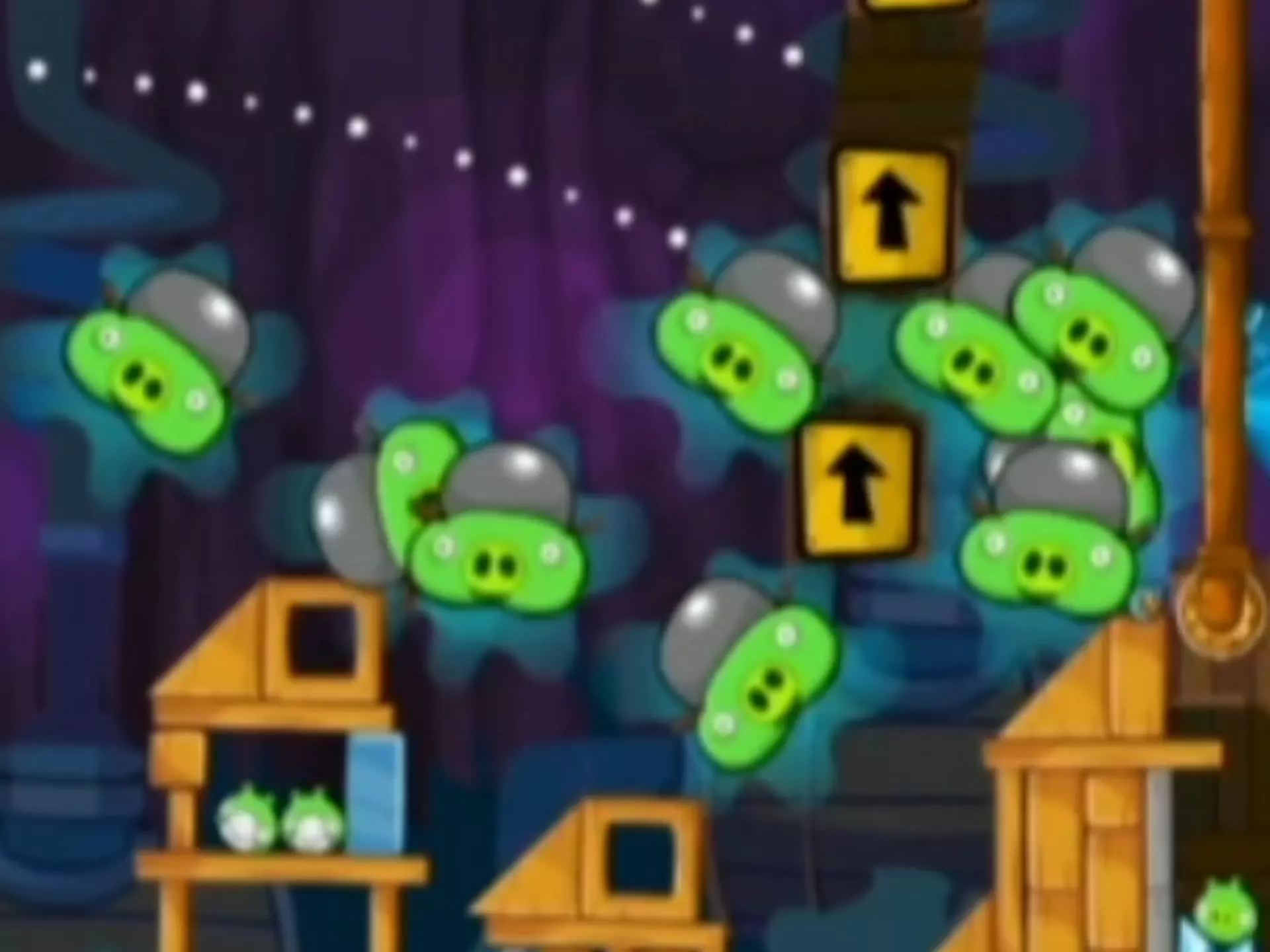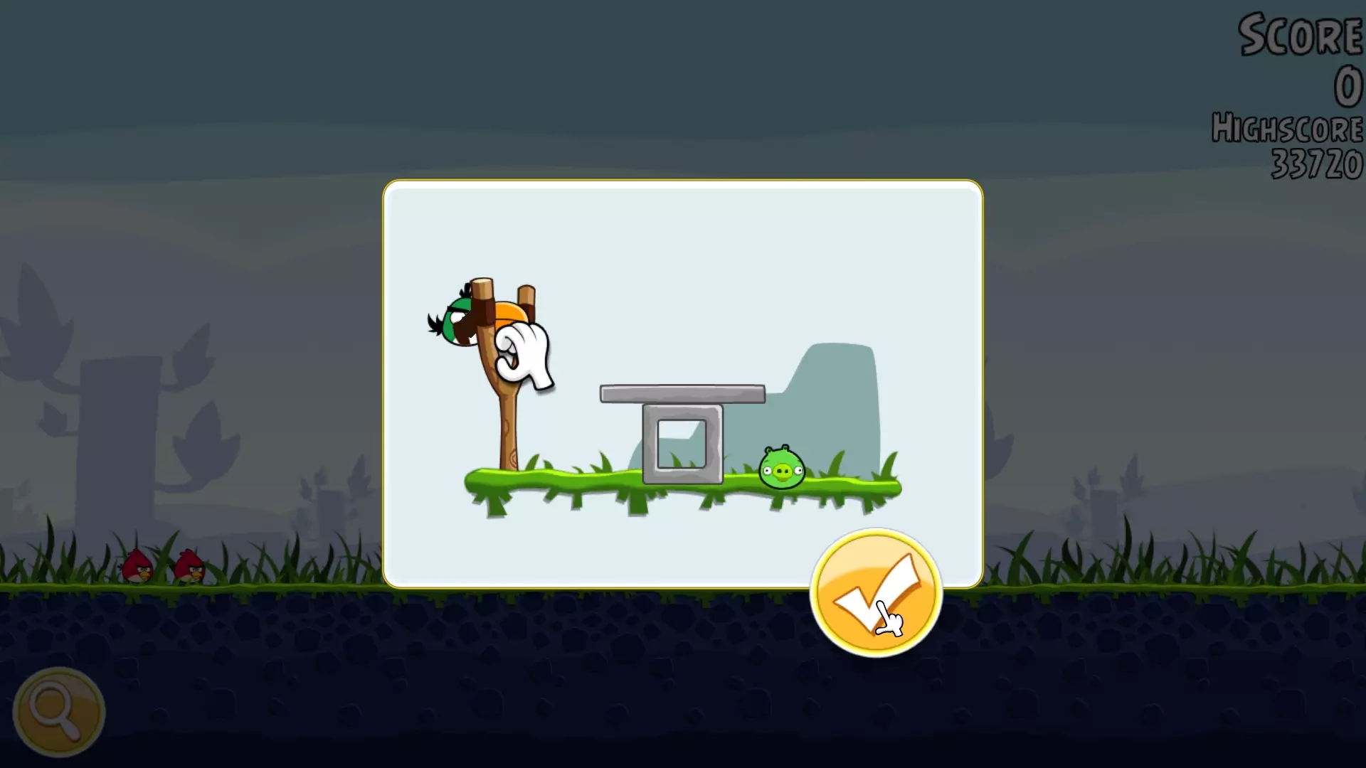 这是愤怒的小鸟战栗1关卡的游戏游玩画面,对局中目标为击败绿猪阵营的国王猪,玩家可选择不同能力的小鸟出战,熟悉的游戏内容让老玩家倍感亲切。