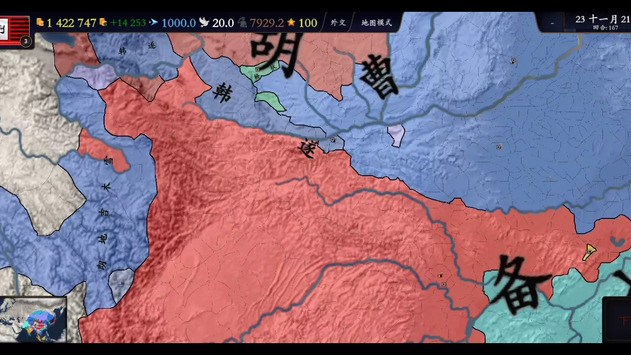 这是《文明时代2》的五胡十六国(上)游戏内容展示,呈现了晋朝等势力的版图分布、军队部署、外交界面以及省份同化等游戏操作,还原了五胡十六国初期的势力格局。