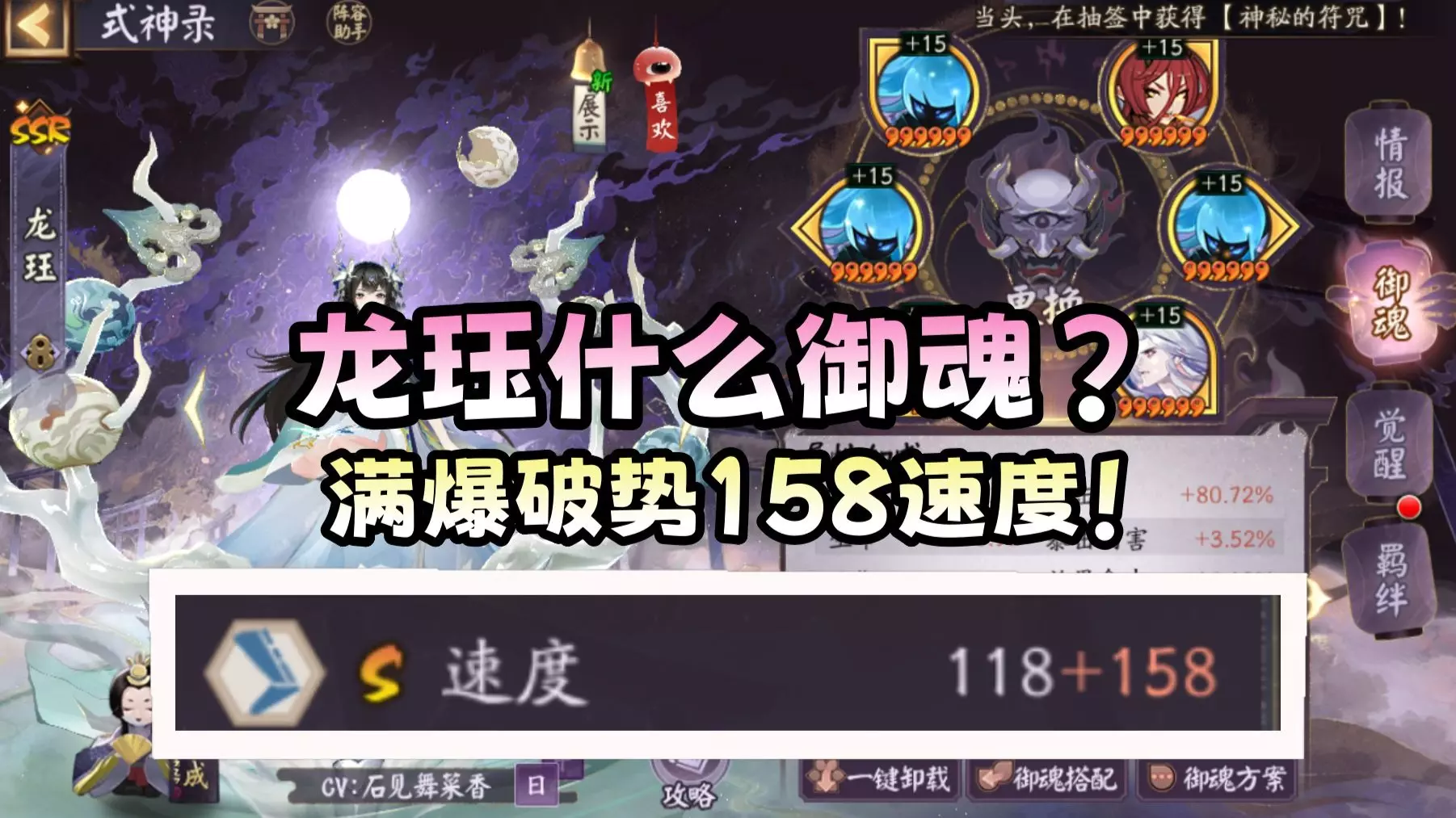 龙珏比对面面灵气快?满爆破势?还有158速?这是什么龙珏御魂 还挺好玩,荒骷髅保住狐狸后期,还可以玩玩一玩。龙珏换成大蛇应该也不错。