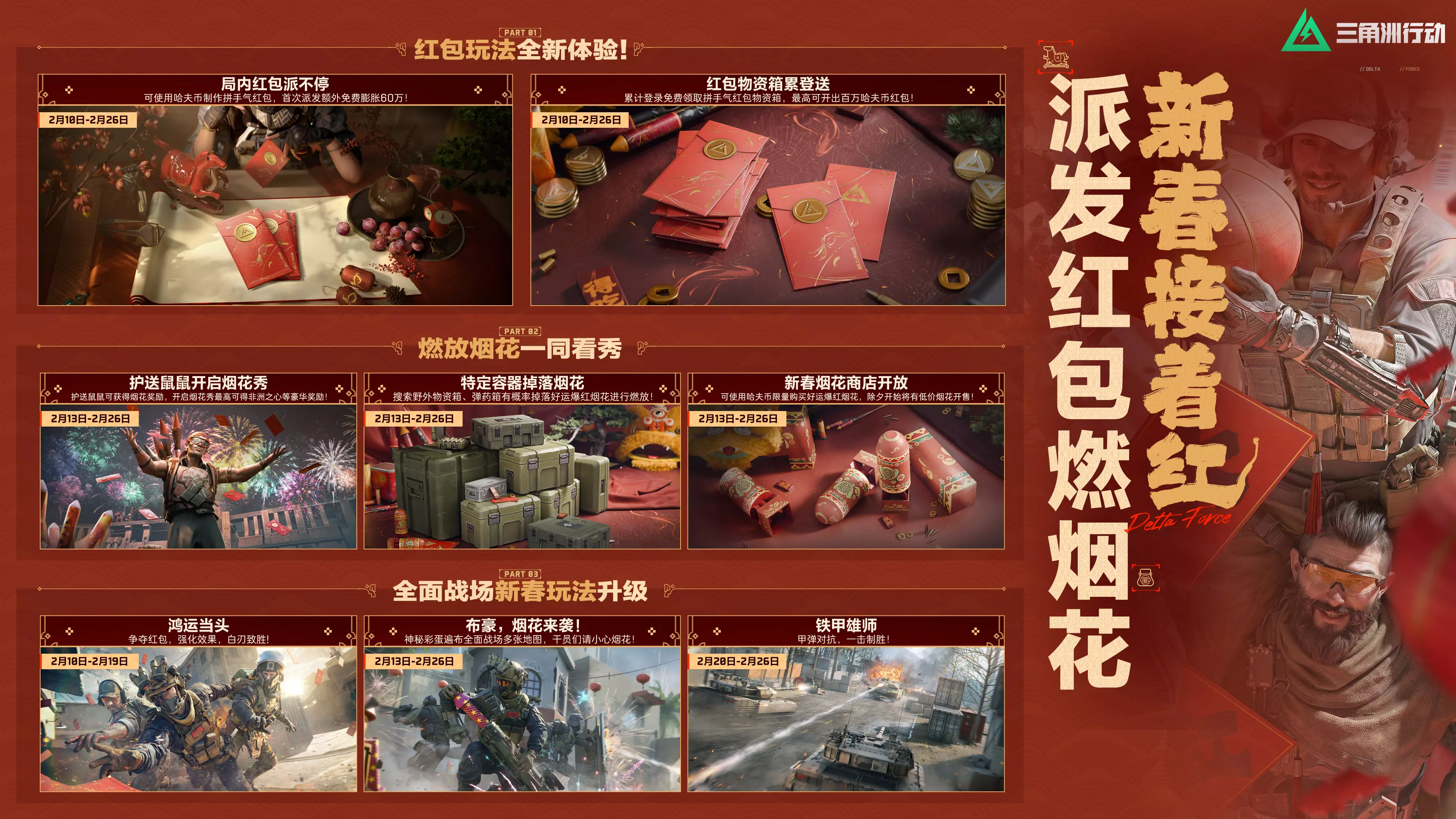 还有六套福袋、新春大红、百万哈夫币红包等海量物资道具等你领取!
